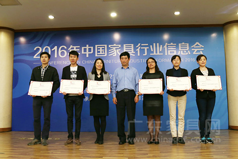 会上还进行了2015年度中国家具行业信息工作“先进协会”、“先进企业”、“先进个人”的表彰。广东省家具协会、北京家具行业协会、天津市家具行业协会、河北省家具协会、山东省家具协会、辽宁省家具协会六个地方家具协会获得“2015年度中国家具行业信息工作先进协会”称号。河北省香河县家具城管委会、圣奥集团、亚振家具、广州尚品宅配、廊坊华日家具、深圳祥利傢俬六家企业获得了“2015年度中国家具行业信息工作先进企业”称号。徐彦英、刘艳明、程浩、陈志荣、刘磊、王超获得“2015年度中国家具行业信息工作先进个人”称号。中国家具协会理事长朱长岭为获奖代表颁发了证书。
