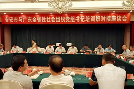 6月25日,吉安市与广东全省性社会组织党组书记培训班对接座谈会在吉安宾馆举行。吉安市委常委、副市长刘振国主持会议,江西省民政厅副厅长凌学仁,广东省社会组织党委副书记、省社会组织管理局局长刘平波,广东省社会组织党委副书记、省社会组织管理局副局长李伟群出席并讲话。江西省民政厅民管局局长刘石呈,吉安市、井冈山市有关单位负责人,广东省家具协会党支部书记、会长王克等广东省行业协会商会的有关负责人,共100多人参加会议。