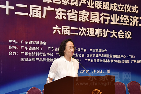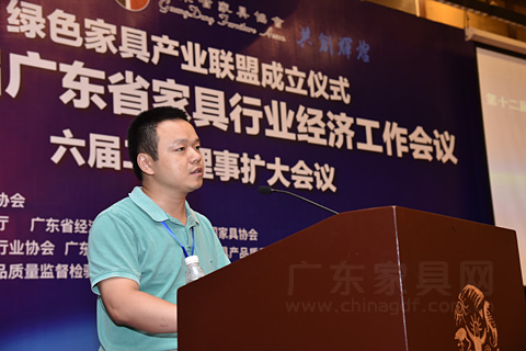 广东产品质量监督检验研究院院长陈锦汉,广东省商务厅公平贸易局处长岳阳,广东省经济和信息化委员会珠江西岸装备产业带推进办公室调研员区毅勇、消费品工业处科长方乐羽,中国家具协会秘书长张冰冰,广东省环境保护厅大气环境管理处科长段献忠,广东省林业厅科长吴灿军,广东省家具协会会长、绿色家具产业联盟领导小组组长王克,广东省家具协会执行会长杜泽桦、何广经、陈桂芳、任作辉、梁纳新、吴赤宇,绿色家具产业联盟领导小组副组长:广东省涂料行业协会会长黄开、广东省林业产业协会副会长黄国如、国家家具产品质量监督检验中心(广东)主任海凌超、国家涂料产品质量监督检验中心(广东)主任陈纪文、广东质检中诚认证有限公司总经理张玫,来自全省各地家具产业集群、地方协会、研究机构、专业院校,以及家具、涂料、人造板行业骨干企业的领导和代表,新闻媒体记者近300人出席了会议。 会上,广东省家具协会会长王克发布并解读了《广东省家具行业“十三五”发展规划》(下称《规划》),提出今后五年广东省家具行业发展目标、指导思想和具体措施。中国家具协会秘书长张冰冰作《当前我国家具行业形势与任务》的报告。省商务厅公平贸易局处长岳阳作《当前的贸易摩擦应对》的报告。省经信委消费品工业处科长方乐羽作《如何开展消费品工业“三品”专项行动》的报告。