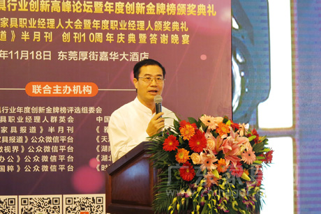 2016第八届中国家具行业创新高峰论坛暨年度创新金牌榜颁奖典礼、第九届中国家具职业经理人大会暨颁奖典礼,于11月18日在东莞举行。行业领导、专家学者及各知名家居制造产业链核心品牌领袖,共同探讨家居行业创新发展趋势。广东省家具协会会长王克应邀出席并致辞,王克会长在会上提出:今后新中式家具与多功能家具将是发展的重点,家具人需要做深做透,走出自己企业的特色。