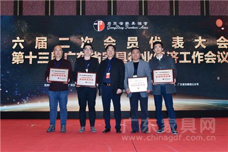 “十二五”期间,为推动我省家具行业在全省传统产业率先实现转型升级,广东省经济和信息化委员会认定18家家具企业为“广东省优势传统产业转型升级龙头、示范企业”,广东省家具协会先后授予四批“广东省家具行业转型升级重点培育企业”共53家。“十三五”时期,优势传统产业转型升级发展将面临新的机遇和挑战,为了扩大我省家具行业转型升级的骨干队伍,培育更多具有带动和示范作用的企业,增强我省家具行业转型升级的发展后劲。会上,广东省家具协会授予佛山市南海新达高梵实业有限公司等18家骨干企业“广东省家具行业转型升级示范企业”称号,授予佛山市南海卓尔文仪家具有限公司等第五批4家企业“广东省家具行业转型升级重点培育企业”称号。