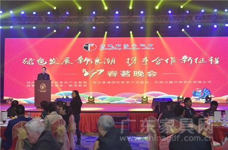 晚会以“绿色发展新浪潮,携手合作新征程”为主题,得到了绿色家具产业联盟、湖北香港国际家居产业基地、东莞市魔风茶叶有限公司的大力协办。 广东省家具协会会长王克在晚会上致辞,新的一年广东家具行业着力实施“增品种、提品质、创品牌”的“三品”战略,全面掀起“绿色家具、创新发展、提升品质、引导消费”的绿色家具浪潮,共创广东家具行业更加辉煌的美好明天。