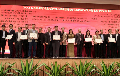 3月22日,广东省社会组织总会2016年度会员评选表彰大会在广州隆重举行,对在2016年彰显社会组织积极作用,促进社会组织健康有序发展、为行业发展做出卓越贡献的社会组织和社会组织工作者进行表彰。 其中,广东省家具协会荣获“2016年度品牌社会组织”、“2016年度社会组织服务国家战略优秀项目”,会长王克荣获“2016年度杰出社会组织会长”,展览部经理陈凌荣获“2016年度优秀社会组织工作者”。