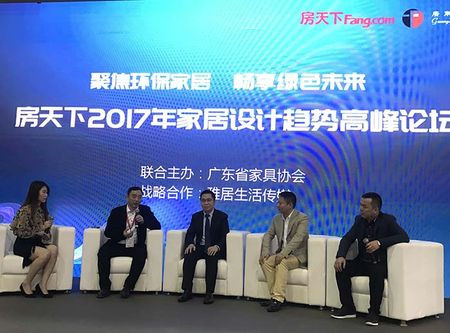 3月18日,以“聚焦环保家居畅享绿色未来”为主题,由广东省家具协会与房天下家居集团广州分公司联合主办的房天下2017年家居设计趋势高峰论坛在琶洲保利世贸展馆圆满举办。 参与本次活动的主要嘉宾有:广东省家具协会会长王克、副会长兼秘书长张承志,房天下家居集团广州分公司总经理李俊辰,陈万里建筑设计事务所董事长陈万里,香港倍安生活家居集团CEO欧阳东平,靓家居常务副总经理万雪冰,泥巴公社董事长谭传尚,广州亚力山大家具有限公司总经理黄碧辉、广州纳艺装饰设计有限公司董事长石先伟。