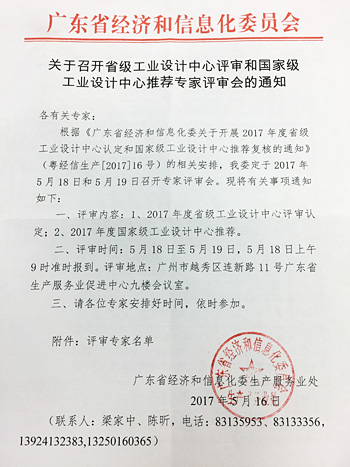 近日,广东省经济和信息化委员会生产服务业处依据《广东省经济和信息化委员会关于开展2017年度省级工业设计中心认定和国家级工业设计中心推荐复核的通知》的相关安排,在广州召开了“广东省工业设计中心认定评审暨国家级工业设计中心推荐专家评审会”。广东省工业设计协会会长胡启志、秘书长周红石,广东省家具协会会长王克等行业协会专家、相关院校教授和财务专家组成评委会开展评审工作。