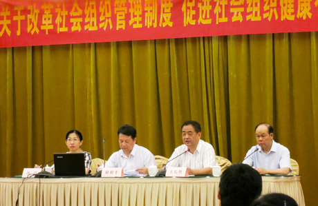 6月23日,广东省社会组织学习《关于改革社会组织管理制度 促进社会组织健康有序发展实施意见》及信息化建设培训班在广州举行。省民政厅副厅长、省社会组织党委书记王长胜,省社会组织管理局副局长徐祖平,省社会组织总会执行会长方向文、常务副会长兼秘书长汤涓,以及各社会组织代表共一百多人出席。广东省家具协会派员参加了专题培训。