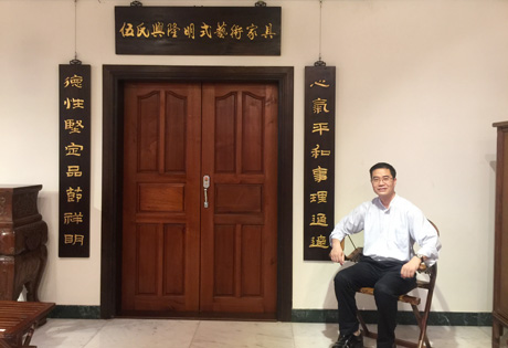 王会长认为:对联“心气平和事理通达,德性坚定品节祥明”,是伍大师三十年来一直致力于红木艺术的传承、创新、发展的真实写照,对伍大师取得的艺术成就,及伍氏兴隆明式艺术家具对行业的重要贡献表示高度赞赏。同时,祝愿黄花梨博物馆早日建成,对外展示伍大师更多、更精美的黄花梨家具艺术作品。