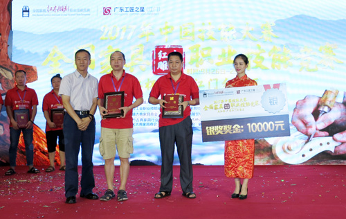 9月26日至29日,红木雕刻好手齐聚台山大江镇,参加2017年中国技能大赛——全国家具(红木雕刻)职业技能竞赛大江杯•广东江门赛区选拔赛。经过3天紧张比拼,9月29日,各个奖项在江山多骄·国际文旅展贸城颁发,标志着本次大赛圆满闭幕。本次大赛共评选出“工匠之星•金奖”1名、“工匠之星•银奖”2名、“工匠之星•铜奖”5名和“工匠之星•优秀奖”30名。