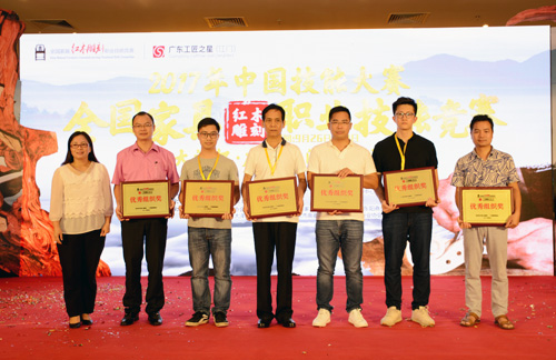 2017年中国技能大赛——全国家具(红木雕刻)职业技能竞赛是经国家人力资源和社会保障部批准的国家级二类竞赛,是家具行业首个列入国家级别的技能大赛,由中国家具协会、中国就业培训技术指导中心、中国轻工业职业技能鉴定指导中心共同举办,全国设置八个赛区。其中,广东江门赛区由台山市大江镇人民政府、广东省家具协会主办,大江镇古典家具商会、江山多骄·国际文旅展贸城承办,旨在搭建一个广东省红木(家具)企业、红木雕刻从业人员互相交流、互相学习的平台,传承和弘扬红木雕刻技艺,培养和发掘行业技能人才,促进台山大江红木产业的转型升级和健康稳步发展。