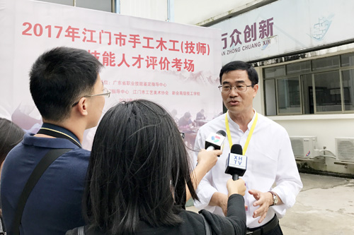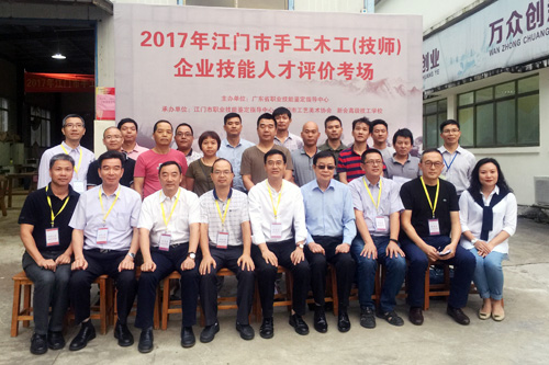 本次评价由广东省职业技能鉴定指导中心主办,江门市职业技能鉴定指导中心、江门市工艺美术协会、新会高级技工学校共同承办,在省内是手工木工(技师)的首次考评。省职业技能鉴定指导中心领导、市人力资源和社会保障局曹志明副局长、市技能鉴定指导中心雷占庭主任、市工艺美术协会司徒捷会长、新会高级技工学校胡利平校长、新会区传统古典家具行业协会黄惠满会长等莅临现场指导工作。