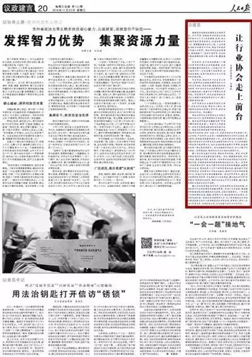 人民日报:让行业协会走上前台 2018-2-12 来源:人民日报 作者:洪慧民(全国政协委员)