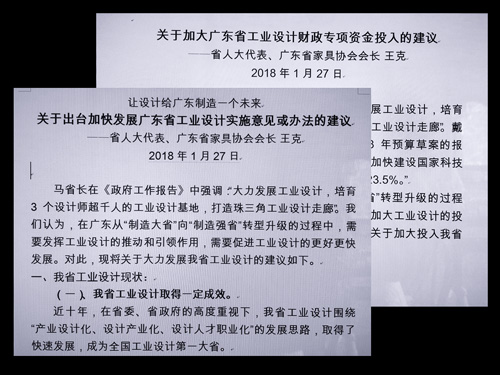 王克代表在广东省十三届人大一次会议提交《建议》:加快发展广东省工业设计及加大专项资金投入 2018-2-26 来源:广东省家具协会