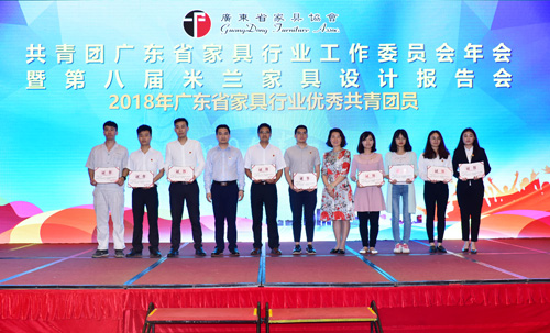 省社会组织党委副书记、省社会组织管理局副局长江海鹰在讲话中表示,广东省家具行业团工委在广东省家具协会党支部的领导下,坚持政治性、先进性、群众性,团结引领家具行业的青年爱岗敬业、积极奉献、改革创新,为青年朋友们搭建了展示自我、不断成长、创造价值的平台,引领了广东家具行业的青年工作和文化建设,涌现出一批优秀的家具行业及相关领域的青年人才,为全省社会组织的青年组织树立了学习的榜样。她希望广东家具行业团工委、共青团员、青年朋友,继续发扬团结协作、敢于创新的精神。一要切实提高政治站位,坚决拥护党的领导,用习近平新时代中国特色社会主义思想武装头脑,听党话,跟党走,为伟大中国梦贡献力量。二要不辜负青春年华,为家具行业的发展贡献青春力量。三是家具行业党支部要继续支持青年工作,继续关心爱护青年的成长进步。 自2012年5月4日共青团广东省家具行业工作委员会成立六年来,一直脚踏实地,勇于探索,构筑行业青年寻梦、追梦、圆梦的基地,通过米兰家具设计报告会、摄影大赛、表彰先进等一系列活动,为充分发挥青年人在行业发展浪潮中的生力军作用作出积极努力。