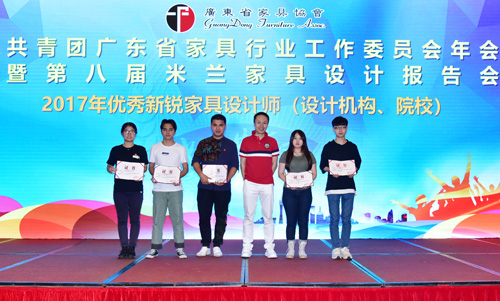 为推动家具行业设计创新工作、提高家具设计师对行业的积极性及归属感。报告会上,广东省聚智家居创新中心、广东省家具协会对华南农业大学张笑影等9名设计机构、院校设计师颁发“2017年优秀新锐家具设计师”证书。同时,对2017年广东省家具协会系列家具设计大赛(包括:红古轩杯、荷花杯、丽江杯、健威杯、百利杯、志达杯、宜华杯)的优秀工作者进行表彰。