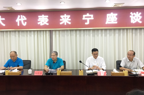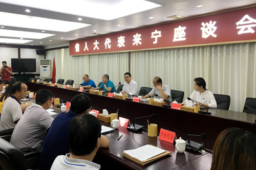 会上,王克代表介绍了本次调研目的。一是了解目前广宁县竹林业及竹产业的现状:1、竹林(商业用途)主要分布情况;2、竹产业的发展情况:如骨干企业、设计院校、设计机构的名称,竹产品类型。3、竹家具发展情况。二是了解目前广宁县竹林及竹产业的政策情况。三是了解今后广宁县竹林业及竹产业未来发展计划和建议。 调研组分别到碧翠湖、罗锅村、观竹亭和万众公司等进行实地调研,了解青皮竹、茶杆竹的形态特征、生长习性、加工利用、竹林生态文化旅游等现状,并在县政府三楼会议室召开座谈会,详细听取了竹加工企业代表在发展壮大竹产业中存在的困难和亟需解决的问题, 听取了广宁县领导、林业局、财政局、经信局、园区、旅游局等部门负责人的汇报。