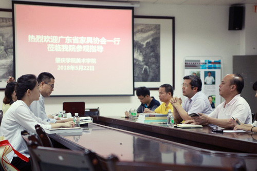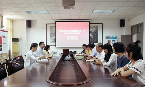 5月22日,为了做好促进广东省经济竹林业建设和竹产业发展的专题调研工作,了解大专院校产学研合作和竹家具设计情况,省人大代表、省家具协会会长王克携协会会员部副经理王娟容、创新部徐春玲一行,前往肇庆学院美术学院参观考察。受到美术学院院长梁善,副院长李小军、李刚,副书记邓泽南,产品设计系主任王锡斌,及曾健丹、韩凌云、纪方圆老师的等热情接待。
