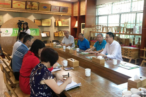 王克代表介绍了本次调研目的。一是了解目前我省、广宁县竹林业及竹产业的现状:1、竹林(商业用途)主要分布情况;2、竹产业的发展情况:如骨干企业、设计院校、设计机构的名称,竹产品类型。3、竹家具发展情况。二是了解目前我省、广宁县竹林及竹产业的政策情况。三是了解今后我省、广宁县竹林业及竹产业未来发展计划和建议。 县林业局局长邓小燕介绍了广宁县经济竹林及竹产业发展情况及存在问题。广宁县是全国有名的十大竹子之乡,现有竹林面积108万亩,是我国青皮竹中心产区,共14属55种,为广东省现有竹种21属132种的66%、41.7%。目前,广宁县经营利用的竹种主要包括青皮竹、茶杆竹和麻竹等。目前全县竹子加工企业360多家,中小规模企业多,规模企业数量较少,5000万元以上企业仅1家。目前竹产业发展存在不足:缺少科学长远的发展战略,竹产品加工科技支撑力低,产业结构不合理,专业技术人才少等问题。