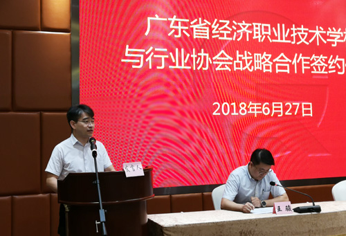 省家具协会会长王克代表签约行业协会发言。王会长指出,广东家协自2005年起坚持与省经济职业技术学校开展合作,先后举办了16期家具行业设计人员培训班,今后,希望通过多领域多角度多形式的培训活动,继续深化合作交流,为行业人才培养和职称评审工作提供实实在在的服务。