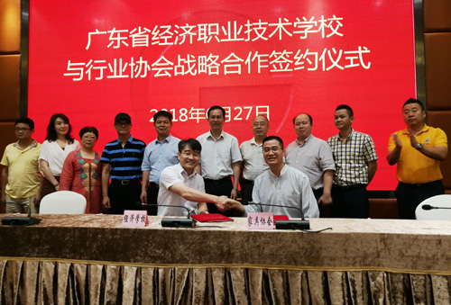 6月27日,广东省经济职业技术学校在广轻控股集团会议室举行“广东省经济职业技术学校与行业协会战略合作签约仪式”。广轻控股党委副书记、总经理、省工艺美术学会会长戴智,广轻控股党委副书记、董事龚学泉,广轻控股人力资源部部长、省经济职业技术学校校长闫长猛等集团领导,以及省家具协会会长王克、省服装设计师协会执行会长丁宁、省服装服饰行业协会副会长周仑等行业协会领导出席。