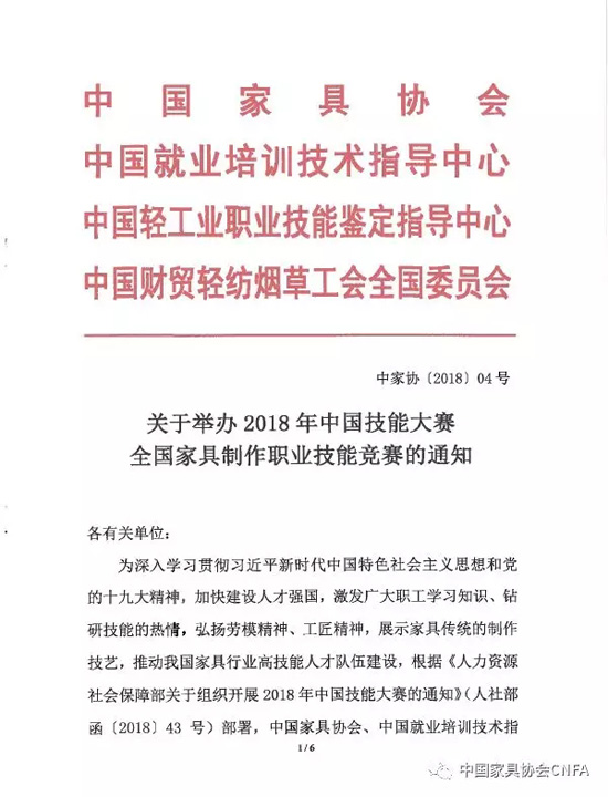 四方通知:关于举办2018年中国技能大赛—全国家具制作