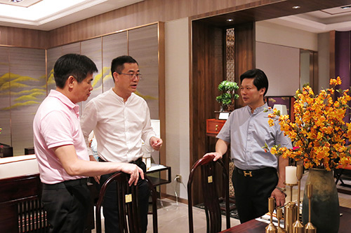 8月9日,广东省家具协会会长王克前往副会长单位中山市东成家具有限公司调研参观,与东成家具董事长张锡复就企业发展、产品开发、新中式家具等话题进行了交流和探讨。