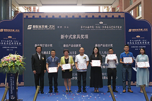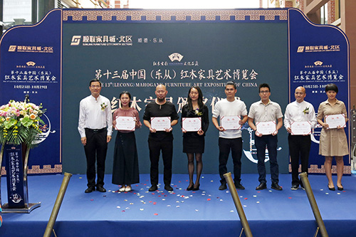 展会上,举行了红木家具颁奖仪式。广东省家具协会会长王克、广东省收藏家协会副主席黄大钊为获奖企业代表颁奖。