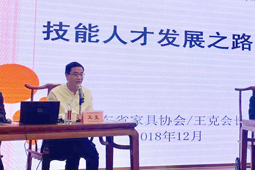 12月25日,广东省十三届人大代表、广东省家具协会会长、广东省职业资格鉴定委员会家具组副组长王克在“工艺美术技能人才培训讲座”上作了《技能人才发展之路》专题报告。