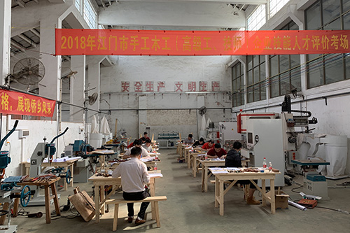 本次考评工作由广东省职业技能鉴定指导中心主办,江门市工艺美术协会等单位承办的“广东省手工木工高级工、技师等级企业技能人才自主评价工作”,在新会高级技工学校举行,22 名来自江门市家具制作企业的技能人才参加考评。