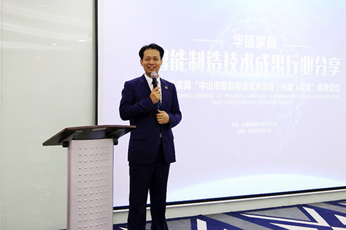 广东家协领导出席华盛家具“中山市智能制造试点示范(创建)项目”揭牌仪式 2019-3-14 来源:广东家具网