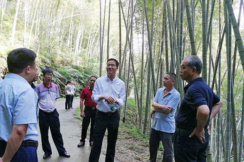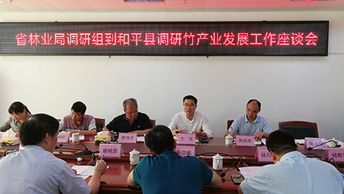6月27日,广东省林业局副厅级巡视员曾伟才,广东省人大代表、广东省家具协会会长王克一行赴河源和平县开展竹林业和竹产业专题调研。调研组先后到上陵镇翠山竹海、竹产品加工企业参观,深入实地了解毛竹种植生长情况、工厂生产运营现状、竹材利用状况,并与地方负责同志进行了座谈。