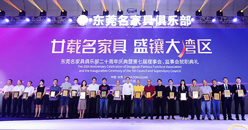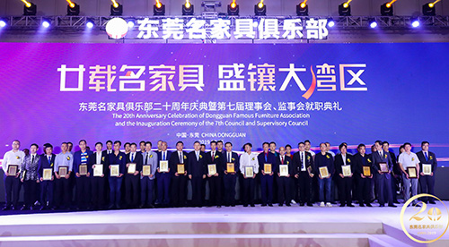 7月6日晚,东莞名家具俱乐部20周年庆典暨第七届理事会、监事会就职典礼在广东现代国际展览中心举行。中国家具协会理事长徐祥楠,东莞市政府党组成员陈仲球,东莞市政府副秘书长王永俊,广东省家具协会会长王克、副会长兼秘书长张承志,以及厚街镇政府领导、东莞名家具俱乐部全体会员,来自全国各地的家居商场和品牌企业代表等出席了庆典。活动现场颁授了东莞名家具俱乐部第七届理事长、副理事长、常务理事、理事、监事长、监事、秘书长和副秘书长任职书,林炳辉再次连任理事长。
