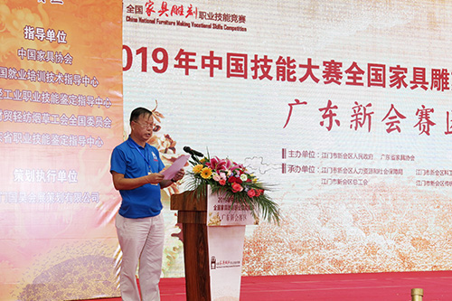 刘金良副主任表示,家具雕刻技艺是中国传统文化重要组成部分,举办本次竞赛的目的是加快培养和选拔行业高技能人才,推动高技能人才队伍建设。广东新会赛区是本次竞赛七个分赛区之一,具有丰富的参赛和办赛经验。本次新会赛区选拔赛自筹备以来,得到了行业协会、政府的大力支持,主办承办单位认真组织,企业和专家全力配合,积极落实方案,使竞赛各项工作顺利推进。预祝新会赛区选拔赛圆满成功,选拔出优秀选手参加10月底举行的全国总决赛。