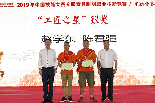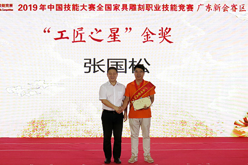 本次比赛以《木雕工》国家职业技能标准中的高级技能(国家职业资格三级)为基准进行命题,包括理论考试和技能竞赛两部分。比赛中,参赛选手精神饱满、沉着应战、各展身手,赛出水平、赛出风格,充分体现了工匠精神。裁判员、总监督员秉持“公平、公正、有序,综合评价、比较择优,技术与艺术相结合”的原则,进行了严谨、认真的裁判工作。本次选拔赛共产生“工匠之星”金奖1名、银奖2名、铜奖7名和“工匠之星奖”20名。来自新会古典家具城有限公司的选手张国松技压群雄,一举夺得“工匠之星•金奖”;赵学东、陈君强获得工“匠之星•银奖”;邵灯祥、周孝金、陈爱军、徐卫成、胡茂水、陈万喜、肖志龙获得“工匠之星•铜奖”。金、银、铜得主还被授予“广东省家具行业技术能手”荣誉称号。本次广东新会赛区将按照赛制要求,推荐优秀选手参加10月底在福建仙游举行的全国总决赛。