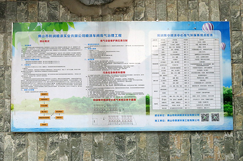 和润喷涂中心是乐从镇政府审批的首家采用活性炭吸附浓缩催化燃烧工艺(RCO)处理(VOC)尾气的集中喷漆尾气处理中心。由佛山市顺德区永豪轩和润家具服务有限公司投资、建设和运营管理。该项目将原分散于各家具厂的喷漆工序聚集至集中治污点,集中生产,集中管理,喷漆废弃通过集中治理设施处理达标后排放。废水治理方面主要针对家具生产过程中的水帘柜及水洗柜的废水进行集中处理。该处理中心有效解决了家具行业环保治理措施存在的一次性投资大、运营缺乏科学性、企业污染物治理成本高等问题,集中性管理便于企业实现监督、专业治理的运营模式。