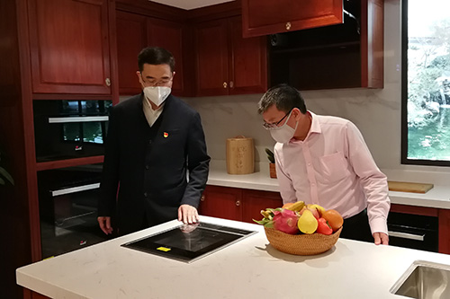 参观展厅过程中,张锡复董事长详细地介绍了东成·文宋和东成·素刻等系列产品,据了解,目前东成·素刻系列正在五华工厂积极投产,项目斥资近亿元,在标准化无尘生产环境中,引进现代化设备、专业研发团队,严格执行国家标准,生产更高效,品质更优越。