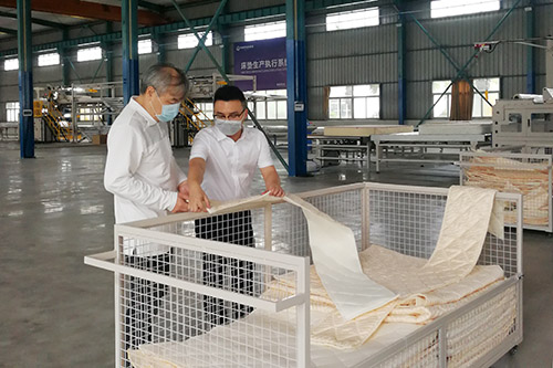 源田公司是专业生产床具机械、弹簧床垫的高新企业。李泓业总经理向协会领导介绍,尽管受疫情影响,复工率较往年有所下降,但公司积极应对,由管理层、党团员、班组长等人员构成的三级防疫梯队,严格落实相关防疫措施,现在复工已经达到90%。同时得益于企业的智能化、自动化转型机遇,目前工厂的订单任务均在有序完成当中。在源田,一名生产工人操作两到三台设备是常见的事,公司将逐步推出多种新研发的自动化设备产品,为客户打造能够高效生产、节省能源,并且最大化利用空间的床垫生产线方案,通过插上科技的翅膀,有效降低工人聚集可能引发的交叉感染。
