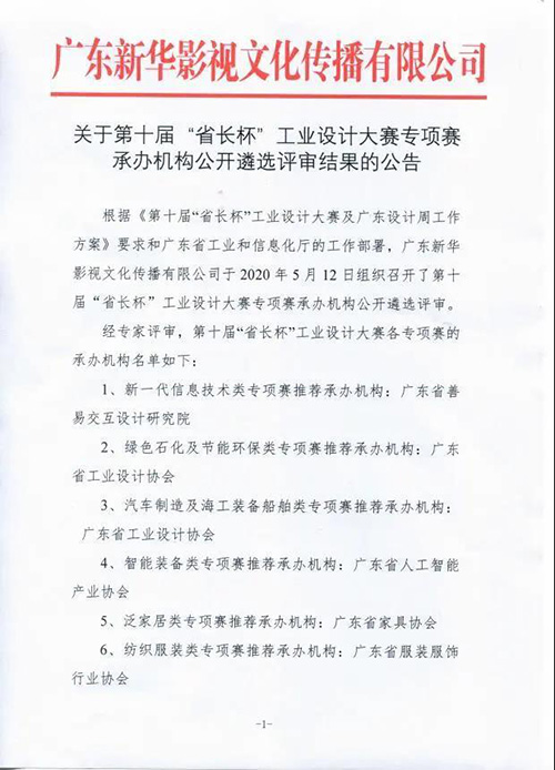 广东家协连续五届成为“省长杯”工业设计大赛专项赛承办机构 2020-6-2 来源:广东家具网