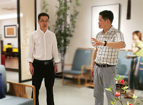 6月11日,广东省家具协会会长王克、副会长兼秘书长张承志前往副会长单位广东华颂家居集团有限公司调研,与董事长陈建京就企业发展、产品研发、知识产权保护、设计创新等话题进行了交流和探讨。
