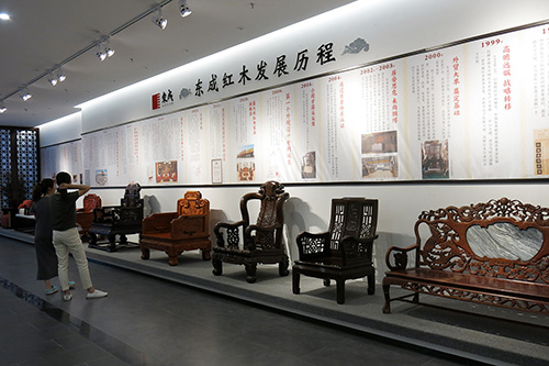 据了解,在五华东成红木生产基地筹建初期,东成公司就制定了“生产+商业+文化”的设计及运营策略,除了打造大型数控智能化工厂,还将文化板块融合进来,打造全新的东成红木文化馆和东成红木家居体验馆,打破传统厂房建筑格局,致力于营造出文化创意休闲环境。走进这个集展览、科普、体验于一体的红木文化馆,不仅可以寻找到中国红木家具发展的肌理脉络,还可以感受到被精细复原的历代经典红木家具的魅力。同时,东成红木以传统古典、新古典、当代中式、东方简奢等不同风格,营造出不一样的沉浸式体验空间,提升参观者的感官与体验质量,促进其对传统文化及红木家具的了解与认知。