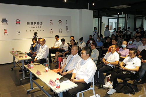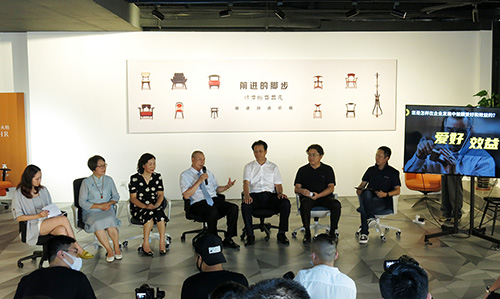 开幕式后,围绕“匠心——企业高质量发展的源动力”的主题,前进家具董事长谭广照、华盛家具董事长姚永红、宝恩家具总经理杨淑琴、五邑大学艺术设计学院院长张超、华南农业大学材料与能源学院副教授郭琼、纷岚创意设计总经理徐岚分别从爱好与效益、匠人的思想、产品的艺术性、传承与创新等方面进行了精彩对话。