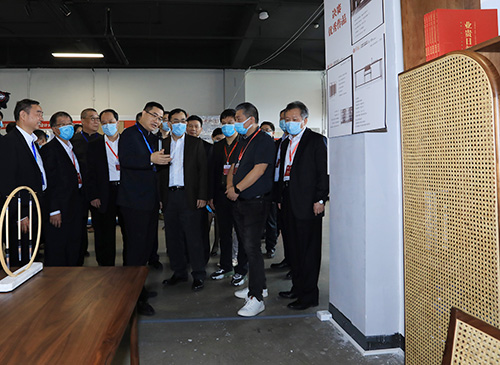 去年,全省推动制造业高质量发展大会明确提出,要实施“六大工程”(强核、立柱、强链、优化布局、品质、培土),坚定不移推动制造业高质量发展。工业和信息化部等十三部门印发的《制造业设计能力提升专项行动计划(2019-2022年)》提出,要提升传统优势行业设计水平,运用新材料、新技术、新工艺,在轻工纺织等具有一定比较优势的产业,实现设计优化和提升,推动传统产业转型升级。 王克会长表示,今后省家具协会将坚持设计为导向,把握“创新驱动、技术改造、环境治理、优化升级”的行业指导思想,以每两年一届的“省长杯”工业设计大赛为契机,不断凝聚我省乃至全国的家具设计力量,为提升我省家具行业的设计水平,为促进家具行业高质量发展,为人民对美好生活的追求作出积极贡献。设计创新,我们一直在路上! 省工信厅二级巡视员叶元龄、生产服务业与交流合作处处长孟辉、一级调研员曾海燕,新华影视董事长黄泾炜,省工业设计协会秘书长周红石、省家具协会副会长兼秘书长张承志等陪同参观。