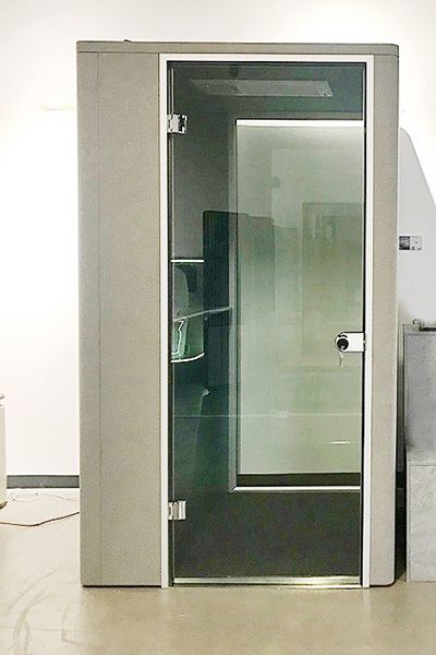 在介绍“轻灵茶空间”产品时,王克会长邀请王曦副省长等领导落座体验,指出省家协十年前在全国率先积极推动“发展新中式家具,倡导新生活方式”,成效显著。这套家具就是一个典型的例子,原木材质的清晰质朴,藤编镂空的怀旧情怀,既有传统中国韵味又有时代气息,既满足茶室用途,也迎合居家办公新潮流。在介绍“乐享智能空间”产品时,王克会长指出这款产品十分小巧,适合当前无间隔大办公空间的轻装修设计中,可以有效解决互不干扰、私密交流的活动空间需求。