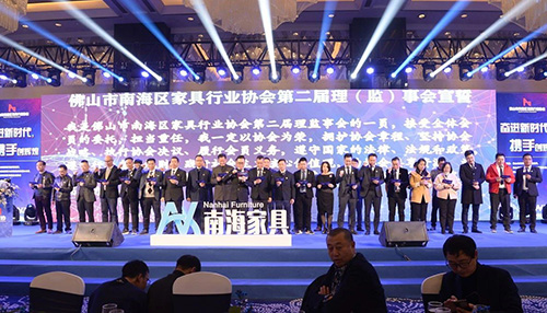 12月18日,南海区家具行业协会第二届理监事会就职典礼在佛山南海举行。活动以“奋进新时代,携手创辉煌”为主题,由南海区经济促进局、九江镇经济发展办公室、南海区家具行业协会主办。中国家具协会副理事长兼秘书长屠祺,广东省家具协会会长王克、副会长兼秘书长张承志、副会长李礼,九江镇镇长张厚祥,南海家具协会会长廖顺南等出席。