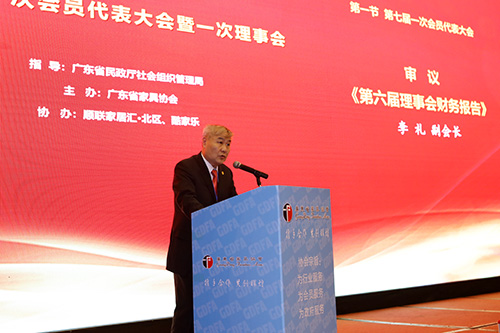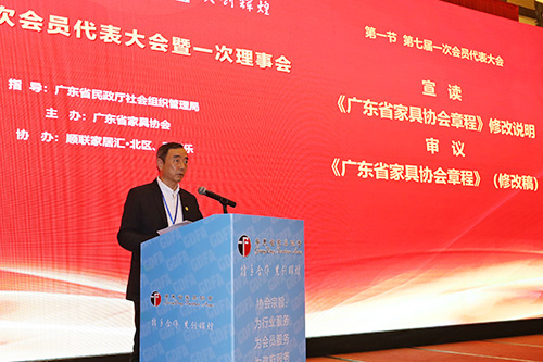 王会长强调,五年来,第六届理事会践行“为行业、会员、政府服务”的办会宗旨,坚持“创新驱动、技术改造、环境治理、优化升级”的行业指导思想,从十个方面开展工作,积极推动广东省家具行业持续健康发展,为广东实现“四个走在全国前列”、当好“两个重要窗口”贡献力量,使广东省家具行业呈现了良好的增长态势,发挥桥梁纽带作用,做了大量卓有成效的工作,为推动我省家具行业高质量持续发展做出应有的贡献。为此,省家协多次得到省领导的接见与肯定,多次得到了省民政厅、省工信厅、省商务厅、省市场监督管理局、中国家协等登记管理及业务指导单位的肯定与表扬,受到行业、会员的肯定与赞赏。 协会十个方面的主要工作:1、注重坚持党的领导,全面开展党建工作;2、注重承接政府职能,提高服务政府和行业能力;3、注重制定行业规划,指导行业健康发展;4、注重加大设计创新力度,提高行业技术创新能力;5、注重加强协会组织建设,努力提高工作水平;6、注重举办展览交流,提高会展服务水平;7、注重强化绿色联盟工作,促进产业链健康发展;8、注重组织全国技能竞赛,弘扬广作工匠精神;9、注重加强标准化工作,致力提升产品质量;10、注重社会公益,积极参与脱贫攻坚战。