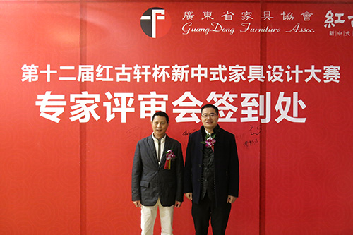 广东省家具协会会长王克、执行会长兼秘书长张承志,中国高等教育家具设计专业创始人之一胡景初,红木家具技术专家曹新民,中南林业科技大学家具与艺术设计学院院长刘文金,顺德职业技术学院教授刘晓红,家具行业资深媒体策划人王周,洪达仁设计咨询公司董事长洪达仁,红古轩总经理吴赤宇、副总经理李春江、厂长李仲良、营销总监杨晶共同组成评审团,共同评审第十二届“红古轩杯”新中式家具设计大赛参赛作品。