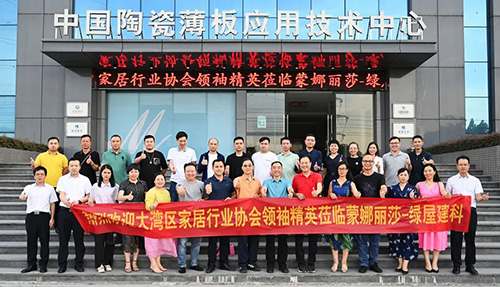 7月12日,为了帮助家具行业挖掘更多发展岩板家具的跨界合作机遇,广东省家具协会执行会长兼秘书长张承志等30多位大湾区家具、橱柜、定制、设计等有关行业协会的会长、秘书长一同走进蒙娜丽莎-绿屋建科展厅,实地了解岩板的生产和应用情况,并进行座谈交流。