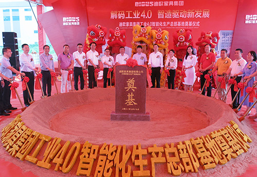 7月17日,以“解码工业4.0,智造驱动新发展”为主题的迪欧家具集团工业4.0智能化生产总部基地奠基仪式在中山小榄隆重举行。广东省第十三届人大代表、广东省家具协会会长王克,中山市小榄镇党委书记黄伟东,迪欧家具集团董事常务副总裁李贱根、董事副总裁黄雅悠、董事副总裁黄云林等出席奠基仪式。