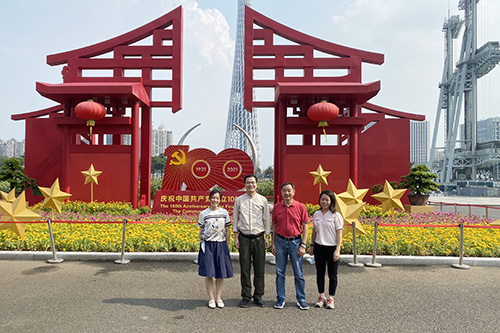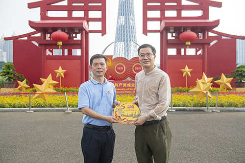 为贯彻落实中央新疆工作座谈会关于“依法治疆、团结稳疆、文化润疆、富民兴疆、长期建疆”的主要精神。在建党100周年之际,7月28日下午,新疆自治区驻广东工作组、新疆“访惠聚”工作办公室、省社会组织管理局、省公安厅等单位,在广州花城广场组织了2021年“粤新一家亲”建党100周年新疆行出征仪式。省社会组织管理局党建处三级调研员夏甲林到会指导,并向省家具协会等单位发放“粤新一家亲”建党一百周年纪念圆盘。省社会组织党委委员、省家具协会会长王克,省家具协会执行会长兼秘书长张承志、副秘书长陈凌、办公室副主任吴杰群出席活动。