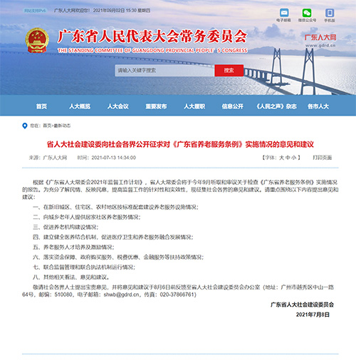 【人大工作】王克代表向省人大社会委反馈《广东省养老服务条例》实施情况的调研意见建议 2021-9-2 来源:广东家具网