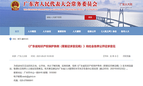 【人大工作】王克代表向省人大教科文卫委反馈有关《广东省知识产权保护条例(征求意见稿)》修改意见建议 2021-9-23 来源:广东家具网